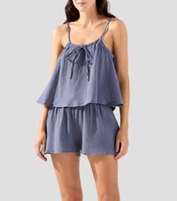 Set top pijama de manga tirantes con short lencero.